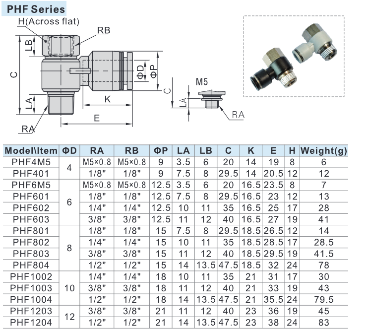 Product OverviewThe Airtac PHF Series Male Elbow Double Thread Pneumatic Fitting is designed for connecting and redirecting airflow at a 90-degree angle in pneumatic systems. Featuring a dual-thread design combined with a push-in connector, it provides flexible installation and secure, leak-proof performance.
