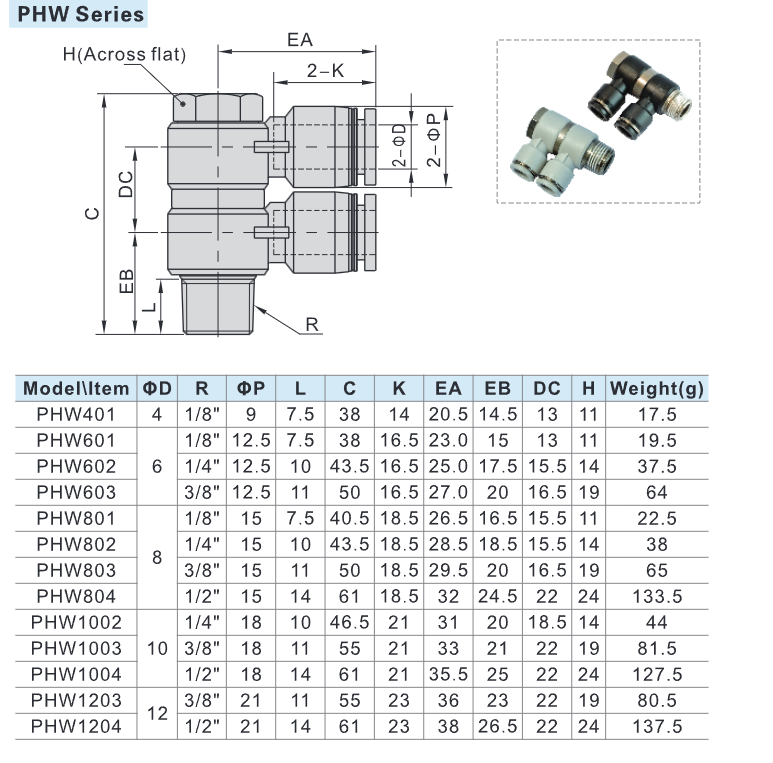 Product OverviewThe Airtac PHW Series Male Branch Tee Pneumatic Fitting is designed to split airflow into multiple directions in pneumatic systems. With its three-way tee design and push-in connectors, it provides flexible installation and efficient air distribution for industrial applications.
