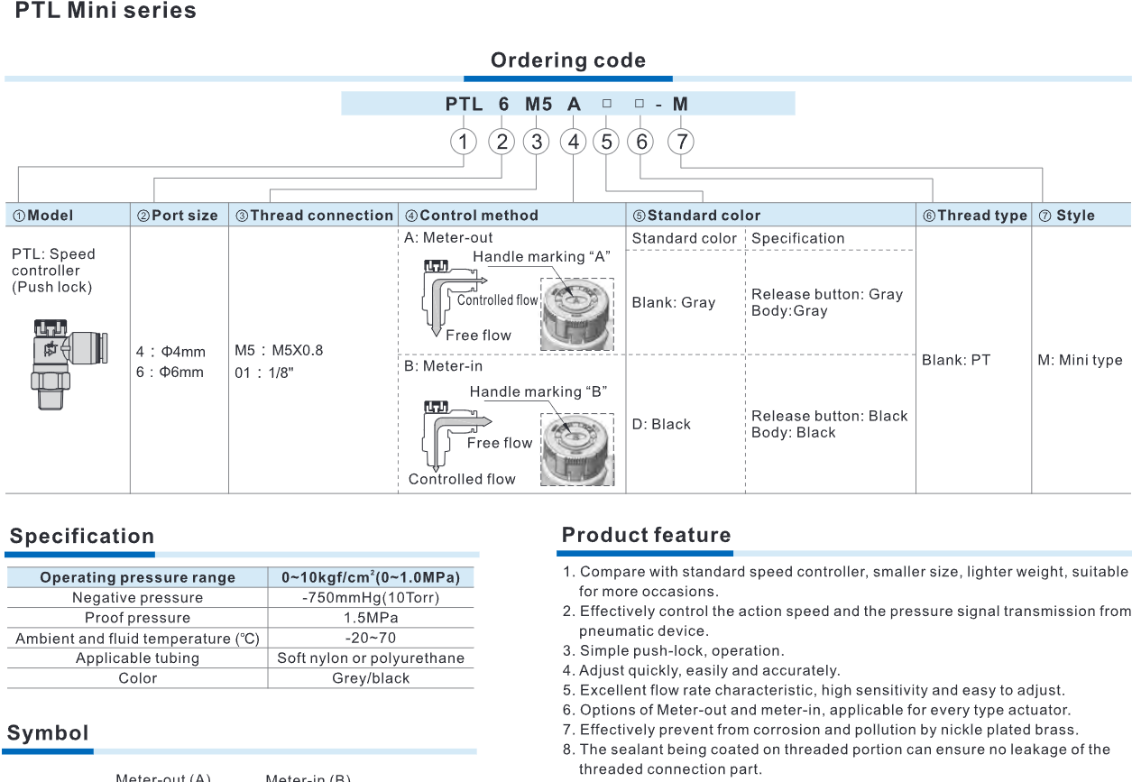 The PTL Mini Speed Controller is a compact pneumatic flow control valve designed to regulate airflow and precisely control actuator speed in limited spaces. With its push-lock mechanism and mini size, it is ideal for modern pneumatic and automation systems.
