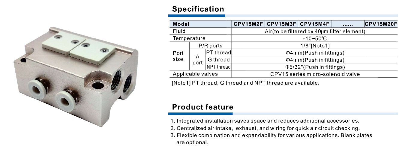 / CPV15M Series Pneumatic Manifold – Manifold Base for CPV15 Micro Solenoid Valves