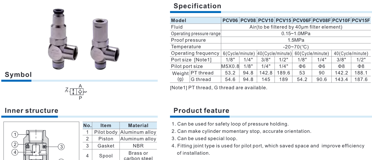 / Airtac PCV Series Pilot Check Valve, Pneumatic Pressure Holding Valve, Cylinder Locking Air Valve for Industrial Automation Systems