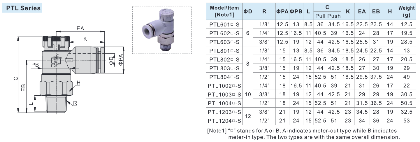 Thông số kỹ thuật Airtac PTL-S Khớp Nối Nhanh Inox Điều Chỉnh Tốc Độ Push Lock