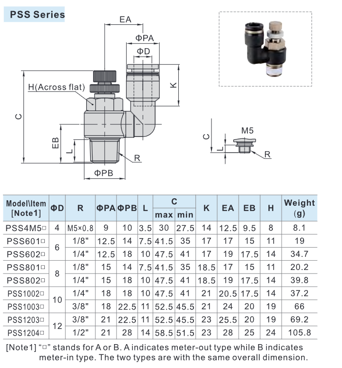 Thông số kỹ thuật Van Điều Khiển Tốc Độ Khí Nén PSS