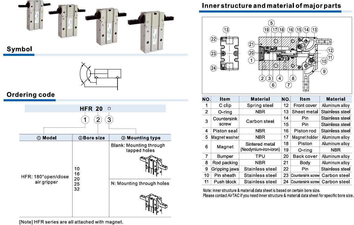 / Kẹp Gắp Khí Nén Airtac HFR 180° – Xi Lanh Gắp Góc Mở 180° Tác Động Kép (10–32mm)