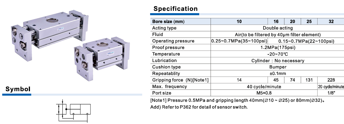 Kẹp khí nén HFT series thiết kế bản rộng, cơ cấu rack & pinion đồng bộ giúp đóng mở chính xác, kết hợp piston đôi tăng lực kẹp cho chi tiết lớn và tải nặng. Hỗ trợ nhiều kích thước bore, stroke linh hoạt, lắp đặt đa hướng và tích hợp cảm biến từ, phù hợp robot công nghiệp, dây chuyền tự động, CNC và hệ thống pick & place.