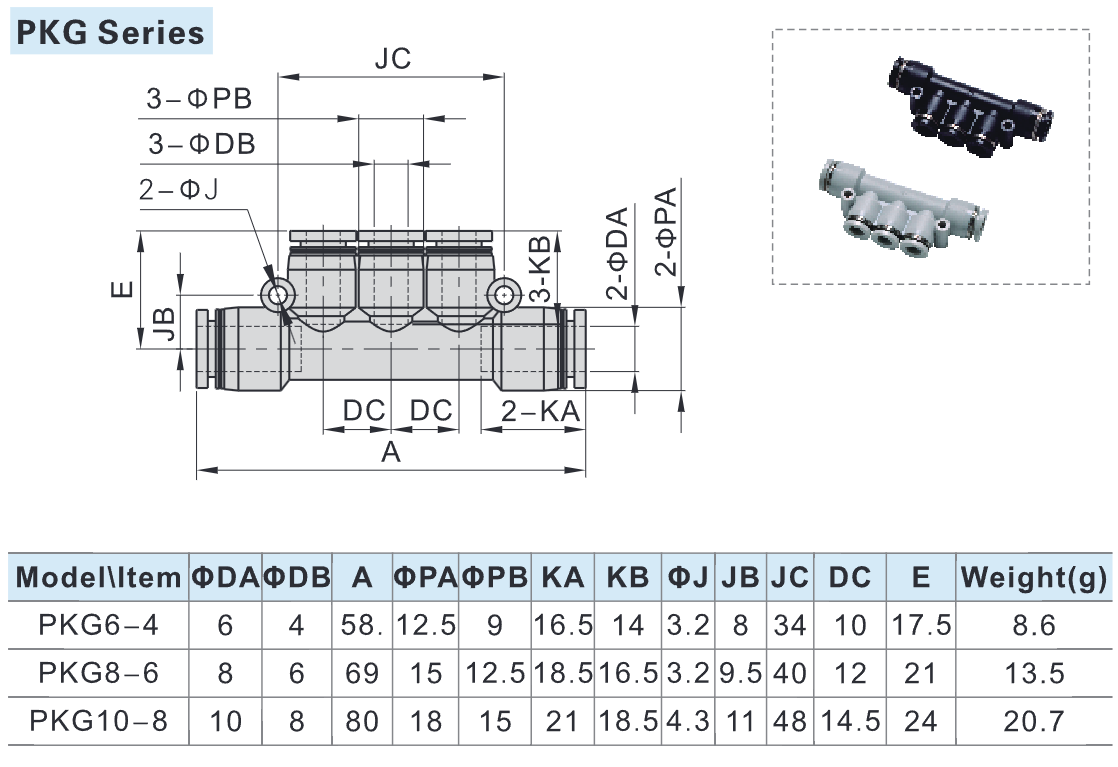 Thông số kỹ thuật Đầu Chia Khí Nén PKG