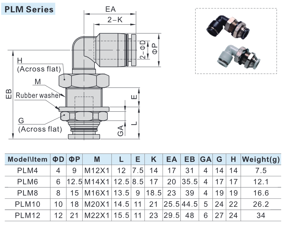Thông số kỹ thuật Đầu Nối Khí Nén PLM Series:
