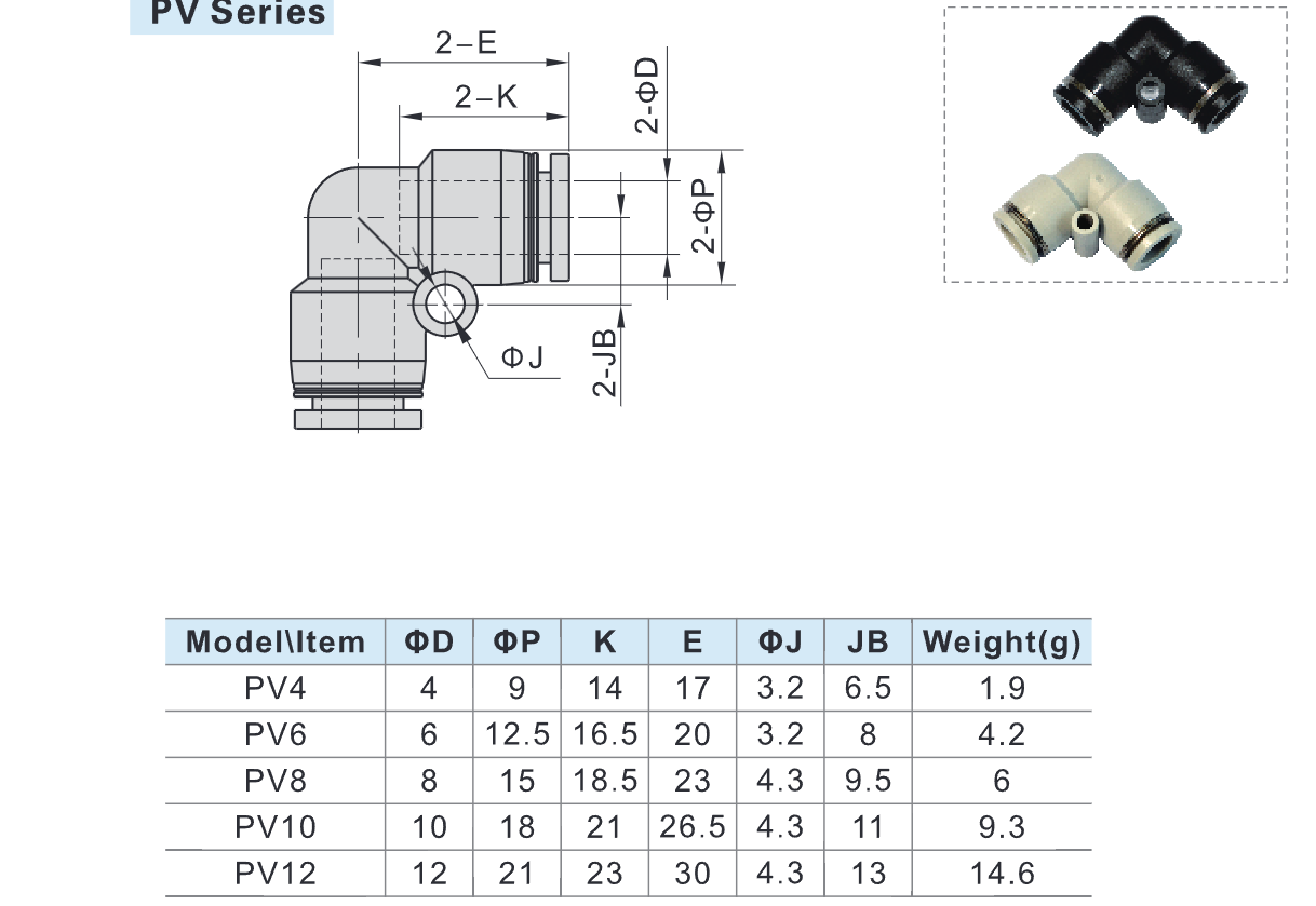 / Đầu nối khí PV Union Elbow – Co nối nhanh chữ L 90° nối 2 ống khí