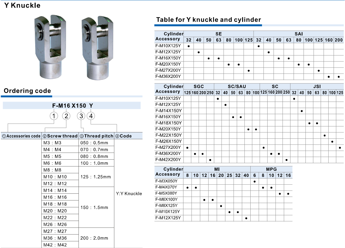 / Khớp nối chữ Y (Y Knuckle) – Đầu nối xi lanh khí nén dạng càng (M3–M42)