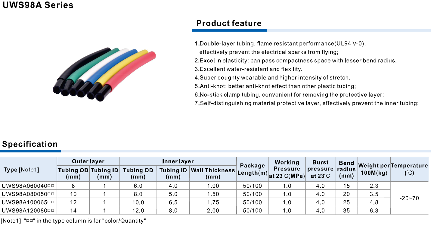 Thông Số Kỹ Thuật Ống Khí Nén Airtac Chống Cháy 2 Lớp UWS98A