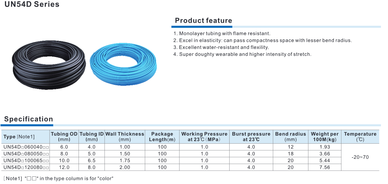 Mô Tả Các Tính Năng, Đặc Điểm Sản Phẩm Ống Khí Nén Airtac Chống Cháy UN54D