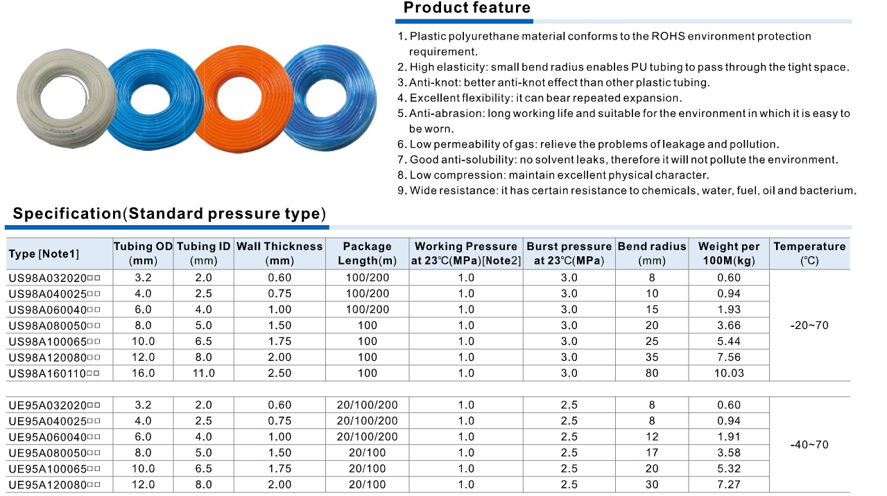Khái niệm sản phẩm Ống khí PU US98A / UE95A