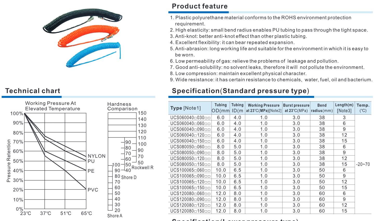 / Ống khí xoắn PU UCS Series – Ống hơi polyurethane dạng lò xo linh hoạt, bền bỉ