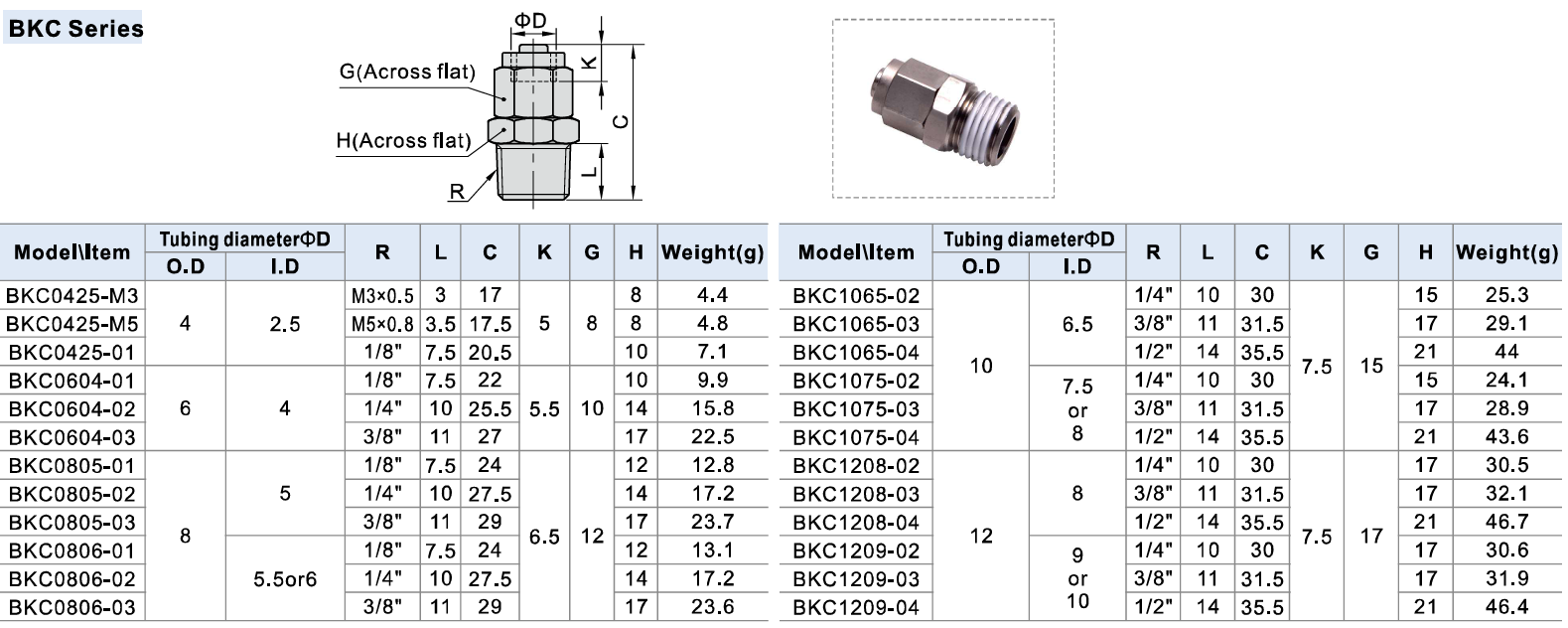Thông số kỹ thuật Phụ Kiện Khí Nén Dòng BKC