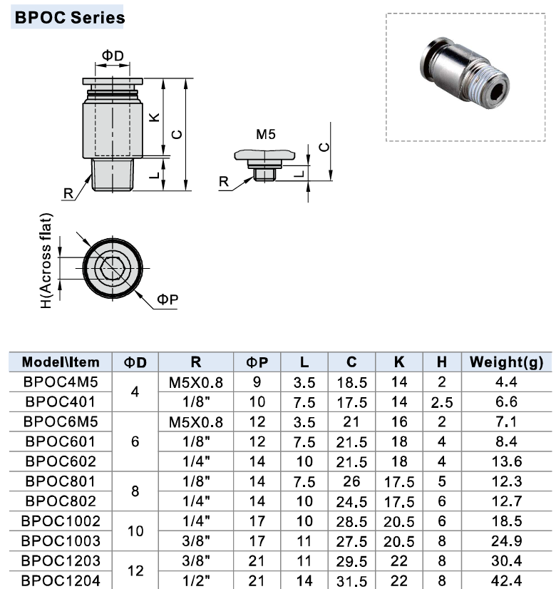 Thông số kỹ thuật Phụ Kiện Khí Nén Dòng BPOC