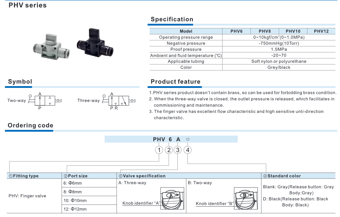 - PHV Series hỗ trợ cả van 2 ngã và 3 ngã, phù hợp nhiều mục đích sử dụng