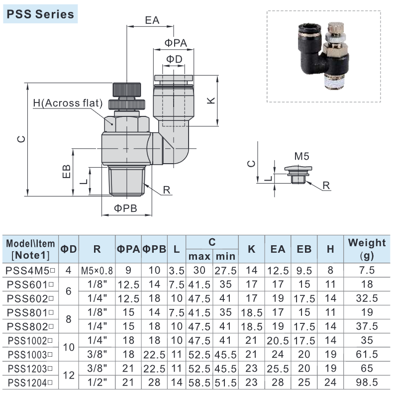 Thông số kỹ thuật PSS-S Khớp Nối Nhanh Inox Airtac Điều Chỉnh Tốc Độ 360°