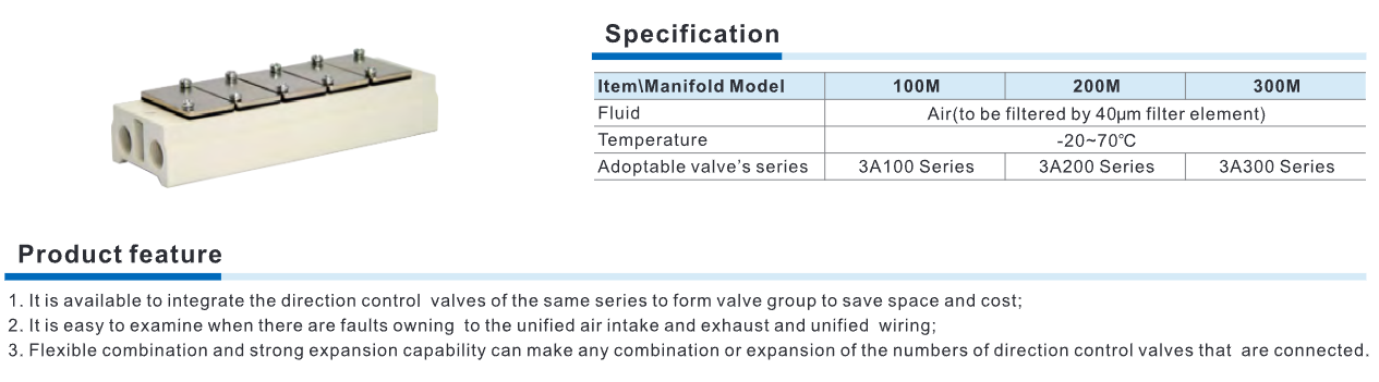 Manifold được thiết kế để tích hợp các van điều khiển hướng cùng series, tạo thành một cụm van hoàn chỉnh giúp vận hành đồng bộ và dễ dàng quản lý hệ thống khí nén.