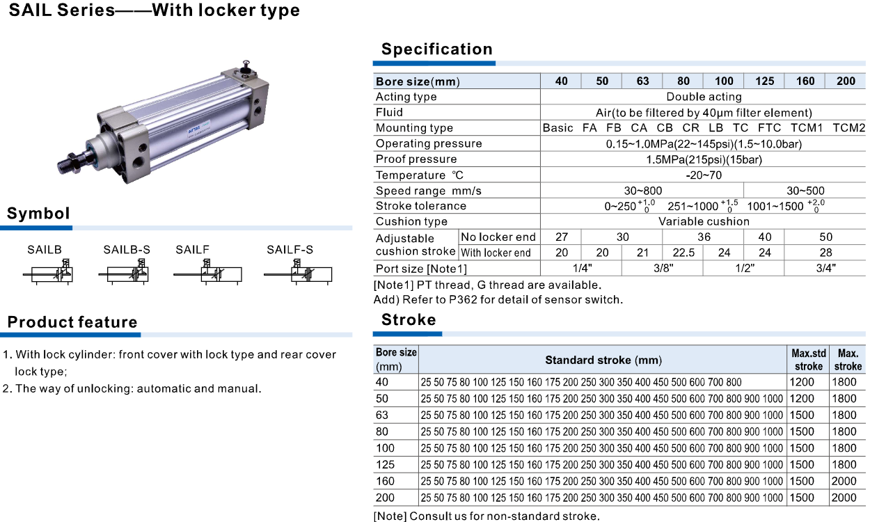 / Xi Lanh Khí Nén ISO15552 SAIL Series Có Khóa – Cylinder Công Nghiệp Giảm Chấn Điều Chỉnh, Giữ Vị Trí An Toàn